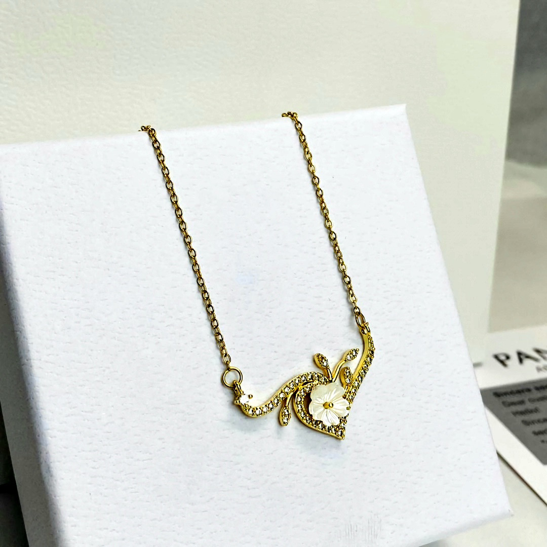 قلادة وردة ابيض ذهبي ستانلس ستيل .