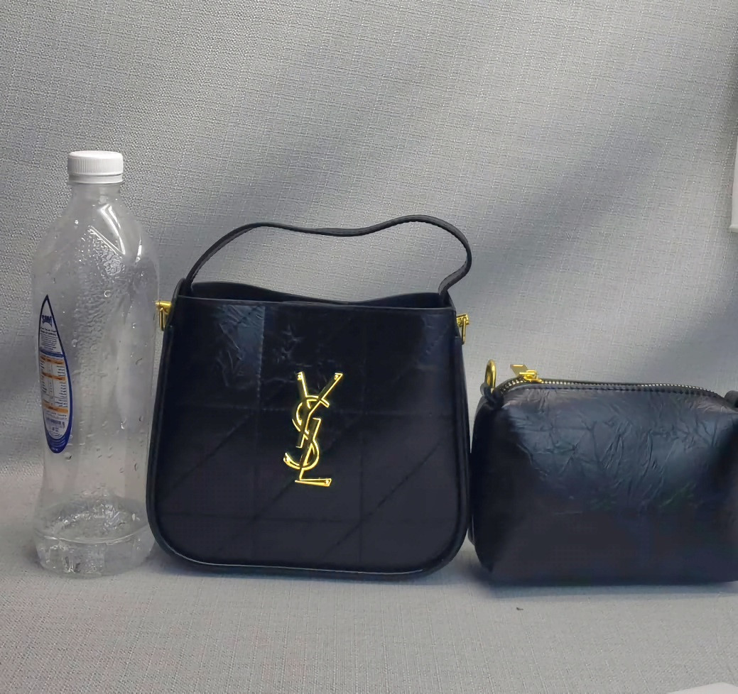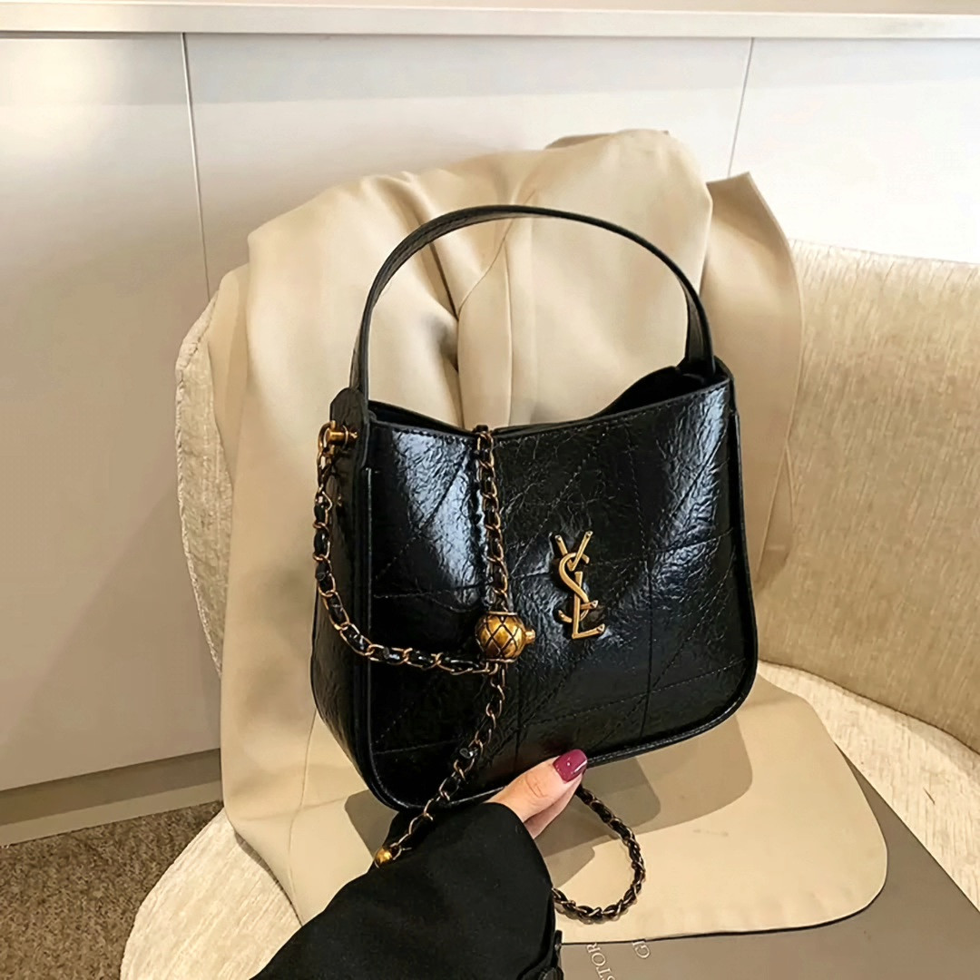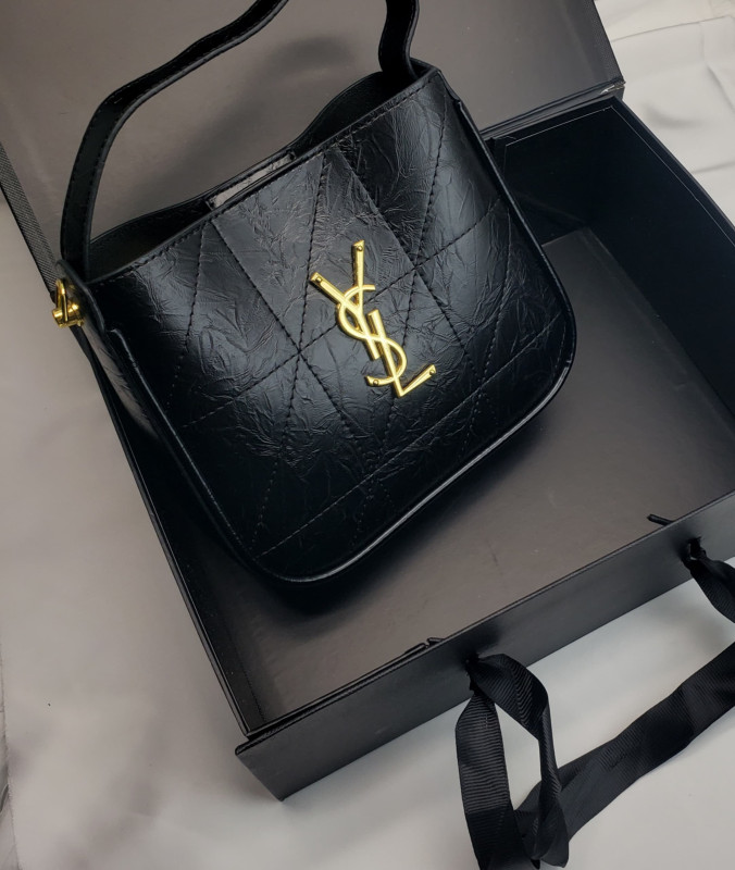 تتميز بحِلية شعار YSL معدنية باللون الذهبي مع حزام سلسلة وجلد قابل للطي لحملها على الكتف.