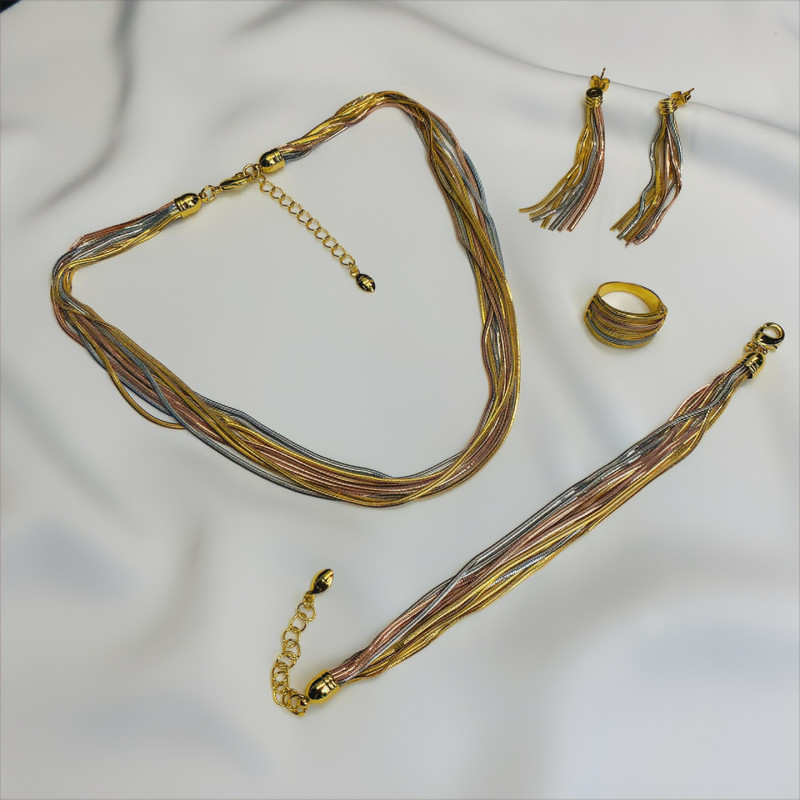 طقم من النحاس مطلي بالذهب ستانليس استيل , 4 قطع .