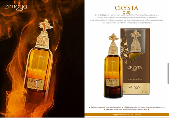 Crysta Oud - مزيج خشبي عطري مع مكونات عليا غنية من خشب العود والورد. يتضخم القلب الحار مع اتفاق الأزهار الذي يقرضه الياسمين. بينما تمنح قاعدة خشب العنبر والمسك الحيواني العطر الأناقة والعمق. يخلق العطر المسكر المدخن المغموس في الأزهار الرقيقة رائحة ذات طبقات رائعة ومعقدة.