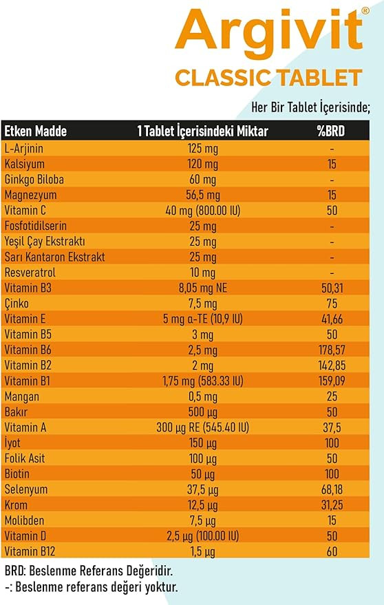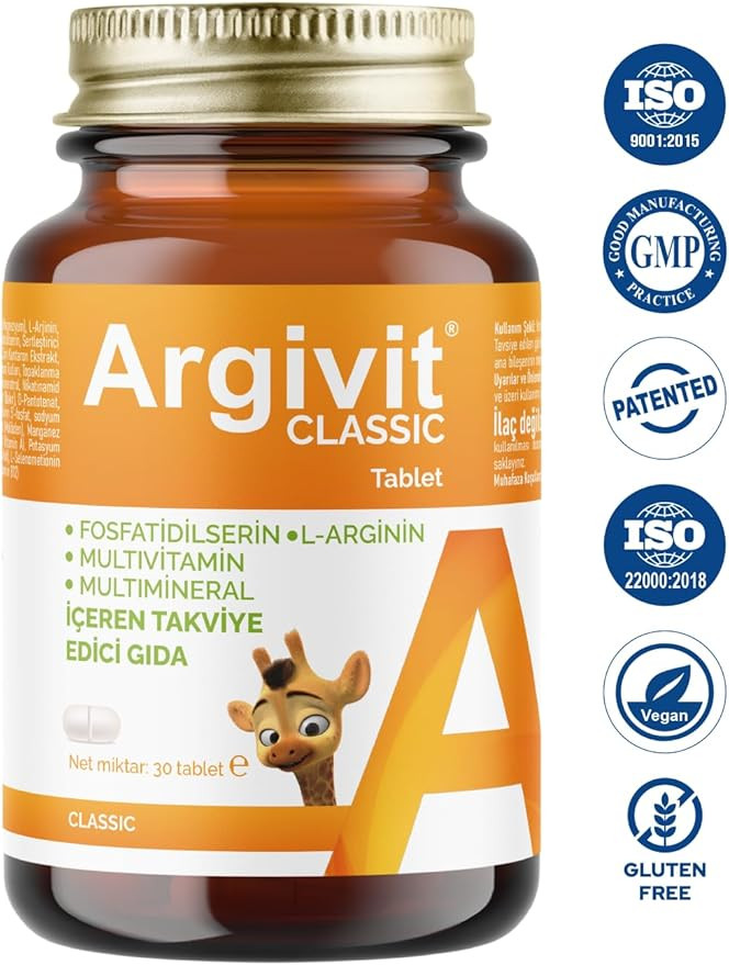 - Argivit Tablet ارجينين ، كالسيوم ، جينكو بيلوبا ، مغنيسيوم ،