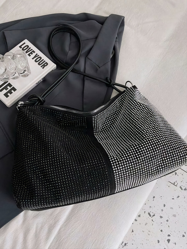 تعمل الحقيبة المرصعة بأحجار الراين كديكور.