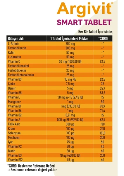 يحتوي كل قرص من “أرجيفيت سمارت” على 200 ملغ من الأرجينين و200 ملغ من فوسفاتيديل سيرين،
